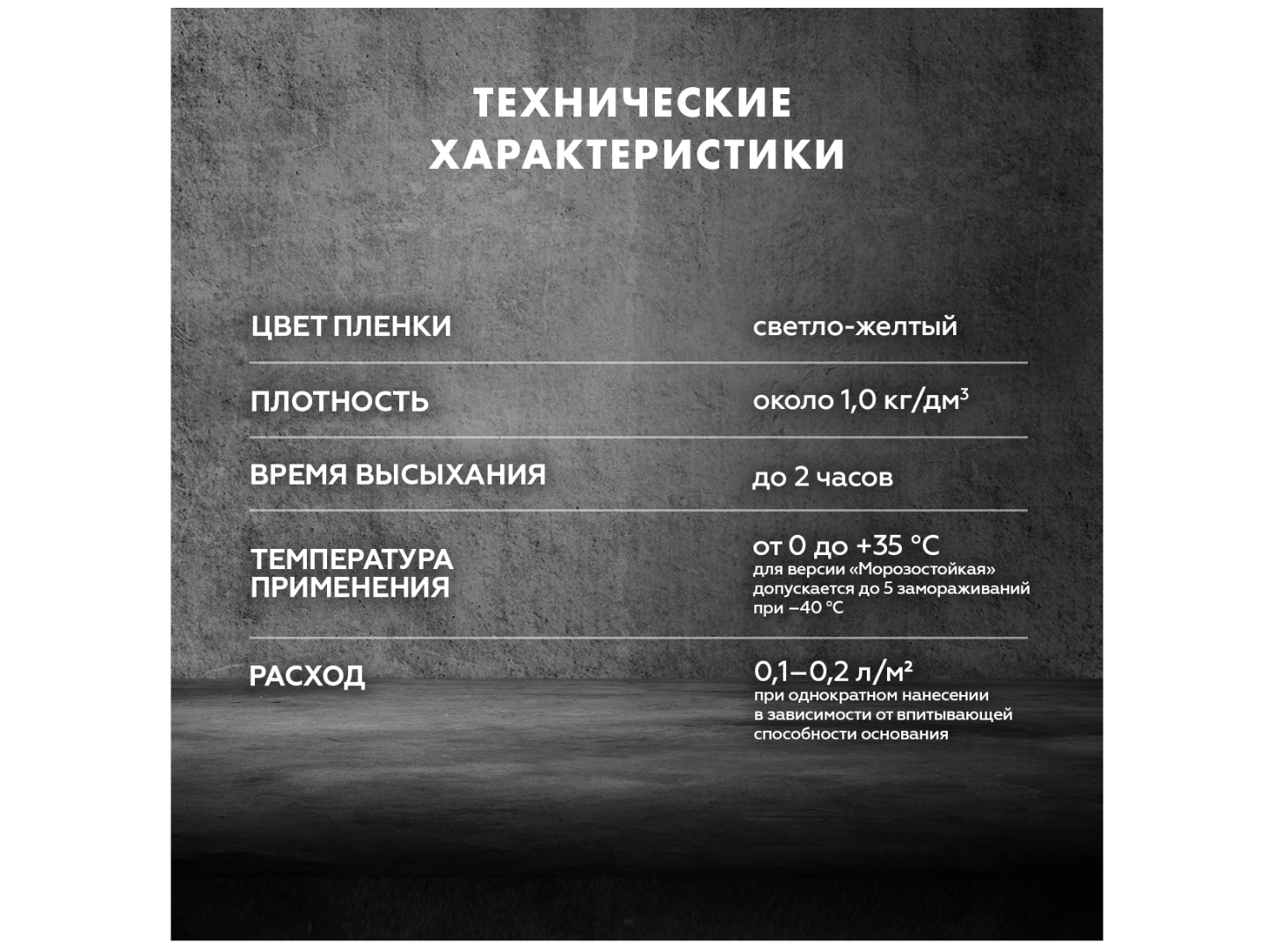Грунтовка сохраняет паропроницаемость обрабатываемых оснований и эффективно связывает пылевые частицы на их поверхности. В состав введён пигмент светло-жёлтого оттенка, что позволяет легко отличать загрунтованные участки от необработанных.