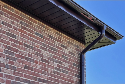 Водосток Grand Line PE 125×90 обладает водопропускной способностью на 25% больше, чем у других производителей водосточных систем с полукруглым желобом. Такая производительность обеспечена увеличенной глубиной желоба.